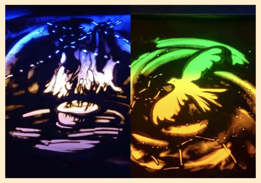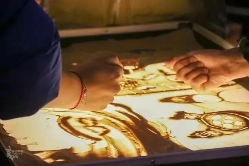 沙画忆党史,喜迎建党百年。一擦一抹,一抛一撒,流动的细沙仿佛有了生命。精心绘制,绘成沙画,献礼建党百年,显华夏儿女爱国情。