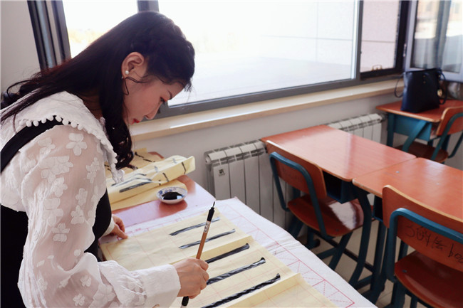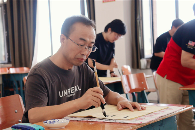 葛龙老师为参加活动的教师讲授了书法基础知识,现场教学示范如何写好一手毛笔字,他总结练字需要一个人具有认真严谨的学习态度,需要科学规范的学习方法,需要沉着冷静的心理状态和持之以恒的坚强毅力。他从欣赏的角度出发,讲解如何客观感受书法艺术之美,引导教师们感悟书法艺术中的“雅”与“俗”,提高了大家对书法艺术的感悟和鉴赏水平。