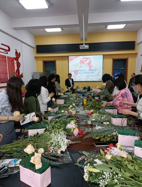 为庆祝第113个“三八”国际劳动妇女节,丰富广大女教职工精神文化生活,提升艺术修养,陶冶性情,3月1日下午,旅游与地理科学学院工会在第六教学楼三楼会议室举办了“花香悦生活·开心旅地人”主题插花活动,学院党委书记冷传平、院长刘吉平出席活动,与全院女教职工共同开展活动。