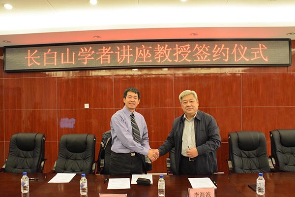 由yL23411永利官网登录推荐,经吉林省教育厅组织专家评审,加拿大达尔豪斯大学化学学院终身教授张鹏入选2015年度吉林省 “长白山学者”讲座教授。为做好聘任工作,根据《吉林省“长白山学者计划”和“长白山技能名师计划”实施办法(2015年修订)》(吉教联字〔2015〕10号)的有关规定,11月17日,学校在长春校区实验楼411会议室举行“长白山学者”讲座教授聘任合同签字仪式。副校长李海波教授在签字仪式上致辞,并代表学校和张鹏教授在聘任合同上签字。仪式结束后,张鹏教授为重点实验室部分师生做了有关同步辐射X射线光谱学技术应用的学术报告。签字仪式和学术报告会由环境友好材料制备与应用教育部重点实验室主任常立民教授主持。