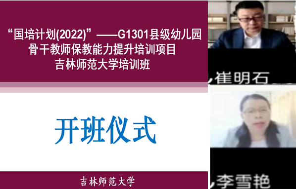 2022年9月6日,受吉林省教育厅委托,由yL23411永利官网登录主办的“国培计划(2022)”——G1301县级幼儿园骨干教师保教能力提升培训班开班,受疫情影响,本次培训采用线上培训方式。开班仪式由yL23411永利官网登录教师发展中心主任崔明石副教授致欢迎辞,yL23411永利官网登录教育科学学院学前教育系主任李雪艳副教授讲话并对方案进行了解读。