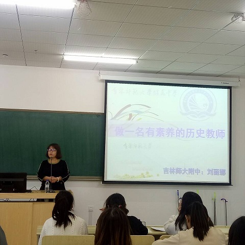 11月7日,我院于11705教室举办“历史学专业校外专家进校园”活动,特别邀请吉林师大附中优秀一线教师刘丽娜进行《做一名有素养的历史教师》为题的讲座,讲座由王立主持,16级全体同学参加。