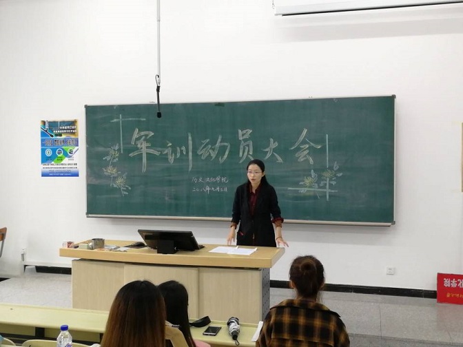 9月3日,学院在11113教室召开2018级新生军训动员大会,分团委书记靳妍钰出席并主持会议,全体2018级新生参加大会。
