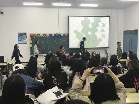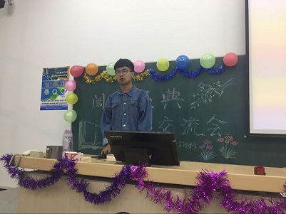 活动由韩佳利、肖钧伟主持,徐铭洋等同学的开场舞拉开了活动的序幕。接下来由郭雨鑫、史小倩、高合德、车广鑫四名同学分别分享他们的读书心得,为大家介绍《活着》、《亮剑》等著名书籍。游戏和互动环节将活动推向高潮。
