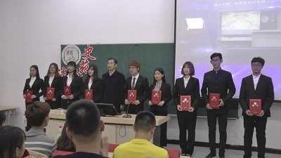 最后薛洪波做了精彩的点评,不但赞扬了王淞泽的精彩表述中具有的思想性和学术性、对史料的运用恰到好处,合理运用了对比和历史学考证的方法以及课件具有极强观赏性和论谈形式的多样性,而且就对如何评价历史人物以及对迁都的解释,对张献忠进行了客观中肯的总结,提出自己独到的见解,希望同学们以发展的眼光看历史。