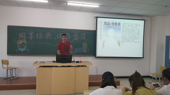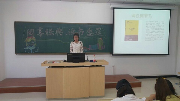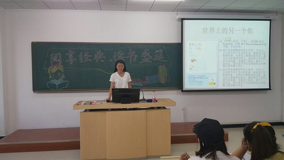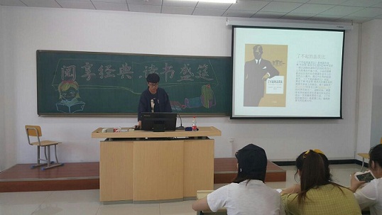 会上,2016级张彩芹、孙月、杜禹、荆玉迪四位学生以独特的视角、新颖的方式分别讲述了《世界上的另一个你》《两汉两罗马》《了不起的盖茨比》《海边的卡夫卡》四部经典著作。其中既有博大精深的历史类书籍,也有激人奋进的心理类书籍,与此同时,读书盛宴中包括有趣味性的娱乐环节,让大家在轻松愉快的氛围中更深层次理解读书的内涵,开拓阅读视野。