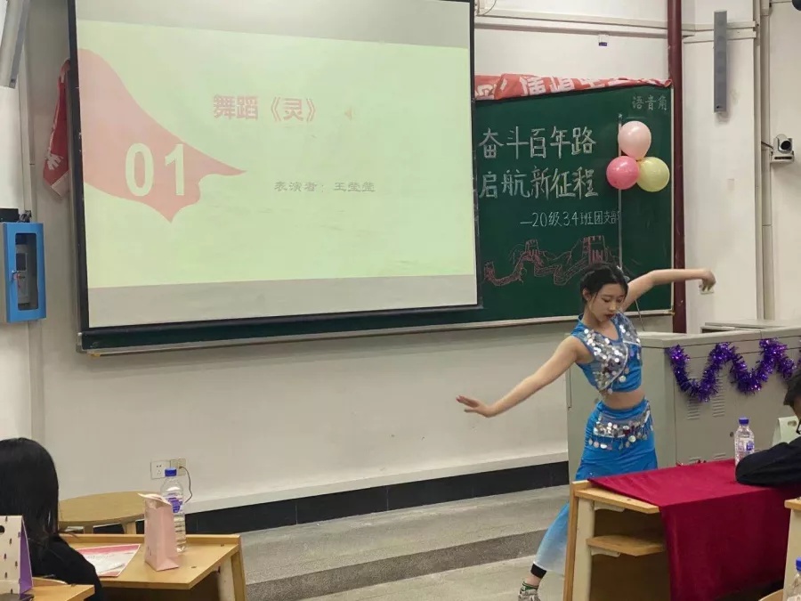 活动伊始,由王莹莹同学带来了民族舞蹈《灵》,衣袂飘飞,舞姿轻盈,展现出少数民族党员在各民族中发挥力量,宣传思想的先进作用。一百年,路漫漫,水迢迢,与时俱进,千锤百炼。江杰同学带来的演讲《胸怀千秋伟业,恰是百年风华》,诉说了中国共产党一百年的血与火、汗与泪,带领人民开辟新的天地与辉煌。