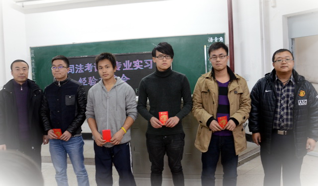 2013年12月4日,我院法律系在10122教室举行了国家司法考试表彰暨经验交流会。政法学院副院长郭宏副教授,法律系副主任王震老师出席了本次表彰会并为同学颁发奖金。11级、12级和13级全体法学专业同学参加了本次交流会。
