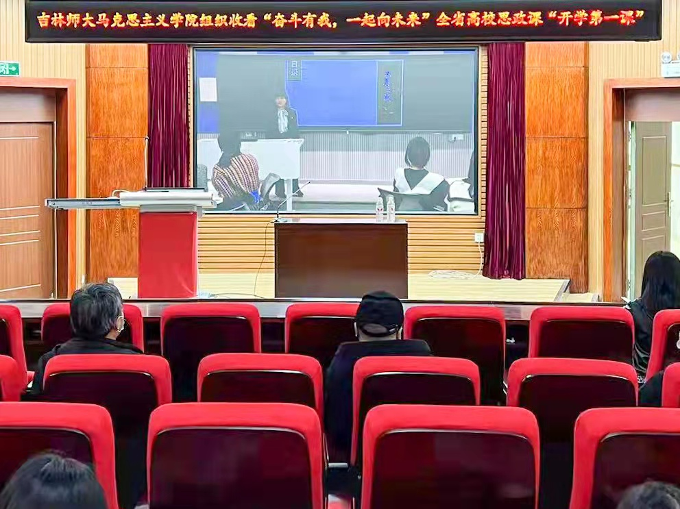 为深入学习贯彻落实习近平新时代中国特色社会主义思想,贯彻落实习近平总书记关于北京2022年冬奥会的重要讲话重要指示精神,进一步增强我院师生的民族自豪感和爱国热情,我院落实省教育厅相关工作安排,我院相关部门教师和全体学生通过手机直播或集体观看的形式收看了吉林省2021-2022学年度第二学期“奋斗有我·一起向未来”全省高校思政课“开学第一课”。