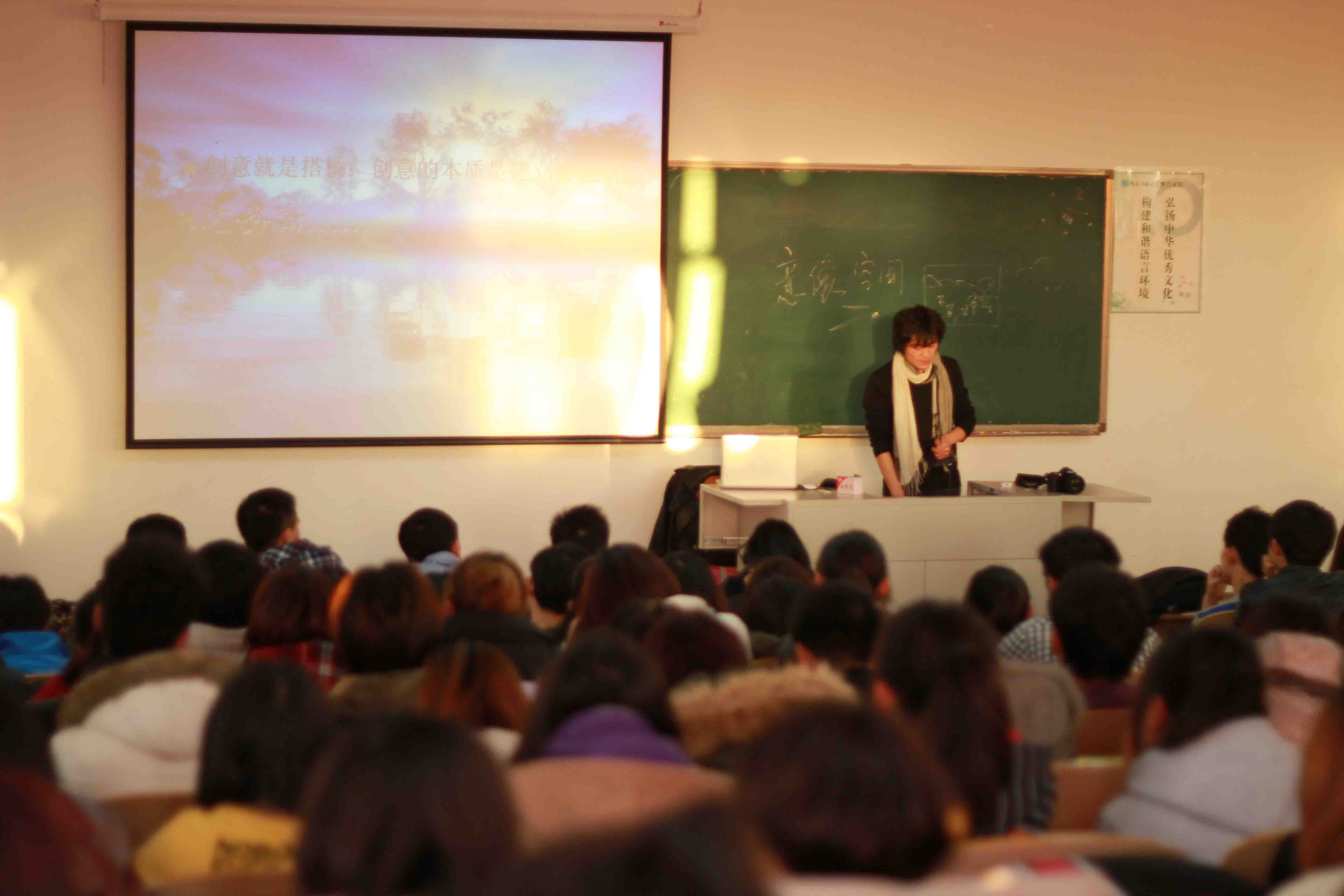 王老师集中阐述了创意思维的形成基础和创意思维对人的素质能力的要求,分析了现代社会环境下专业学生如何进行基础创意训练,并给正在专攻艺术设计专业的学生提出了几点学习建议。王老师语言生动幽默,整个讲座掌声不断,就老师和同学提出的问题一一做了详细的解答,本次讲座圆满结束。