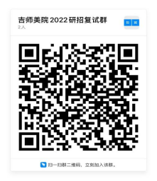 所有进入复试名单的考生请保持手机畅通。为方便联系请各位考生加入钉钉“吉师美院2022研招复试群”,扫描二维码进入,按照要求群内须实名制,备注“专业+姓名+手机号码”。