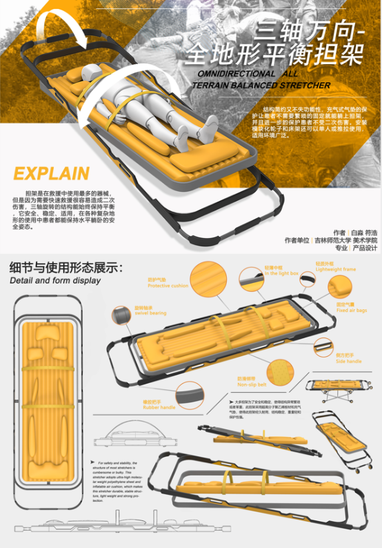 白淼、符浩《三轴万象-全地形平衡担架设计》90×120cm 产品设计