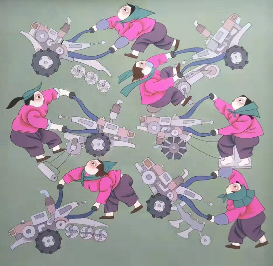 李俊敏《谁说女子不如男》65×65cm 农民画