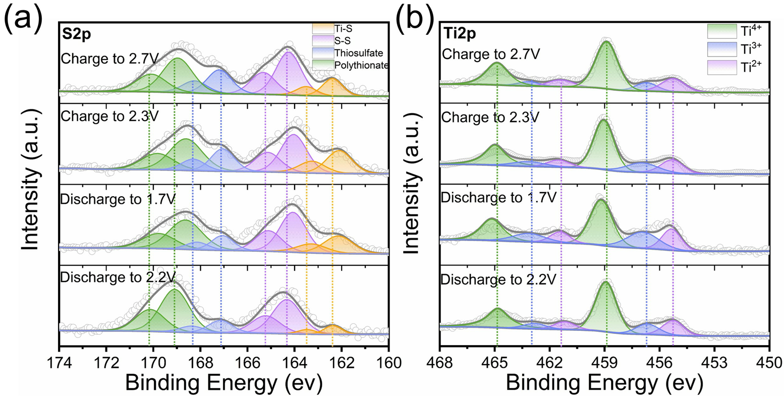 图3:Ti³⁺/Ti⁴⁺动态变化及Ti-S键强度随充放电状态演变