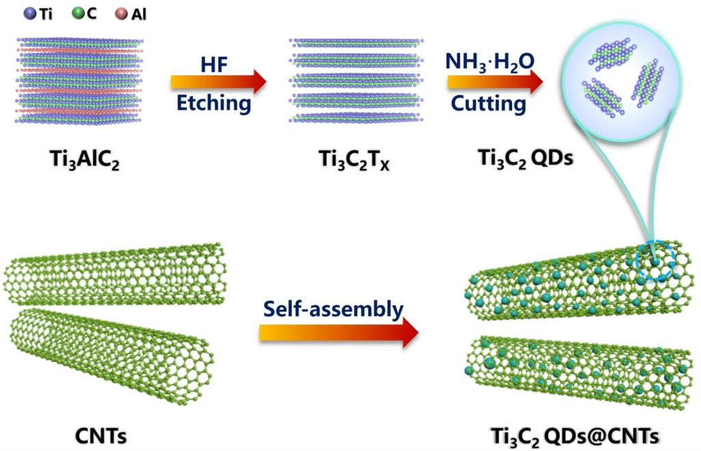 图1:Ti3C2QDs@CNTs复合材料制备示意图