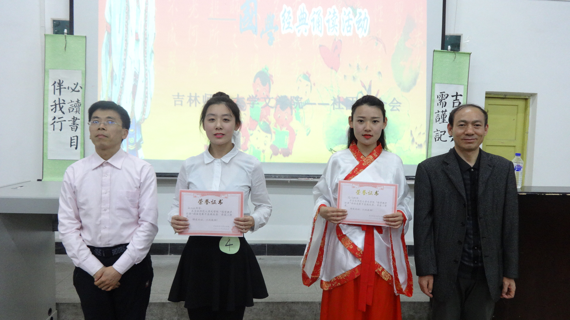 为响应校学生处“吉师六律”的号召,呼吁学生重读国学经典,5月9日下午6时30分,文学院社团联合会于6103教室成功举办了国学经典诵读活动。