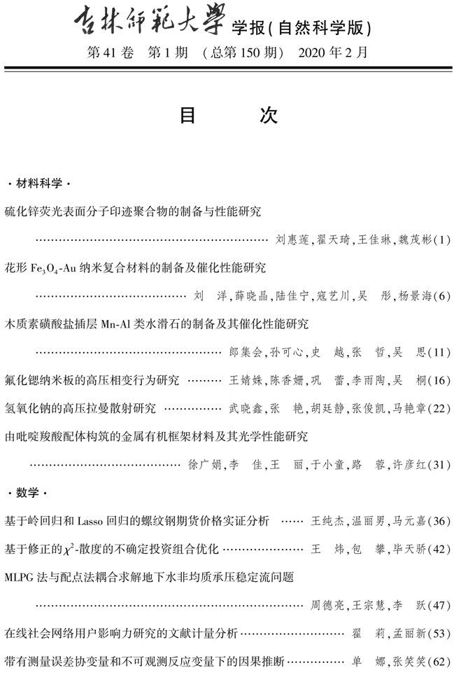 《yL23411永利官网登录学报》(自然科学版)2020年第1期