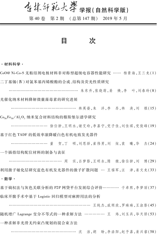 《yL23411永利官网登录学报》(自然科学版)2019年第2期