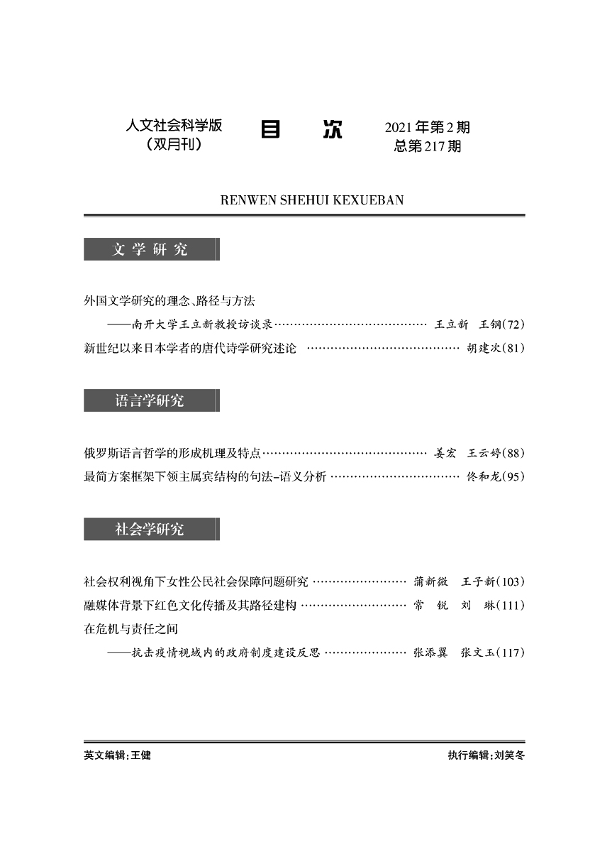《yL23411永利官网登录学报》(人文社会科学版)2021年第2期