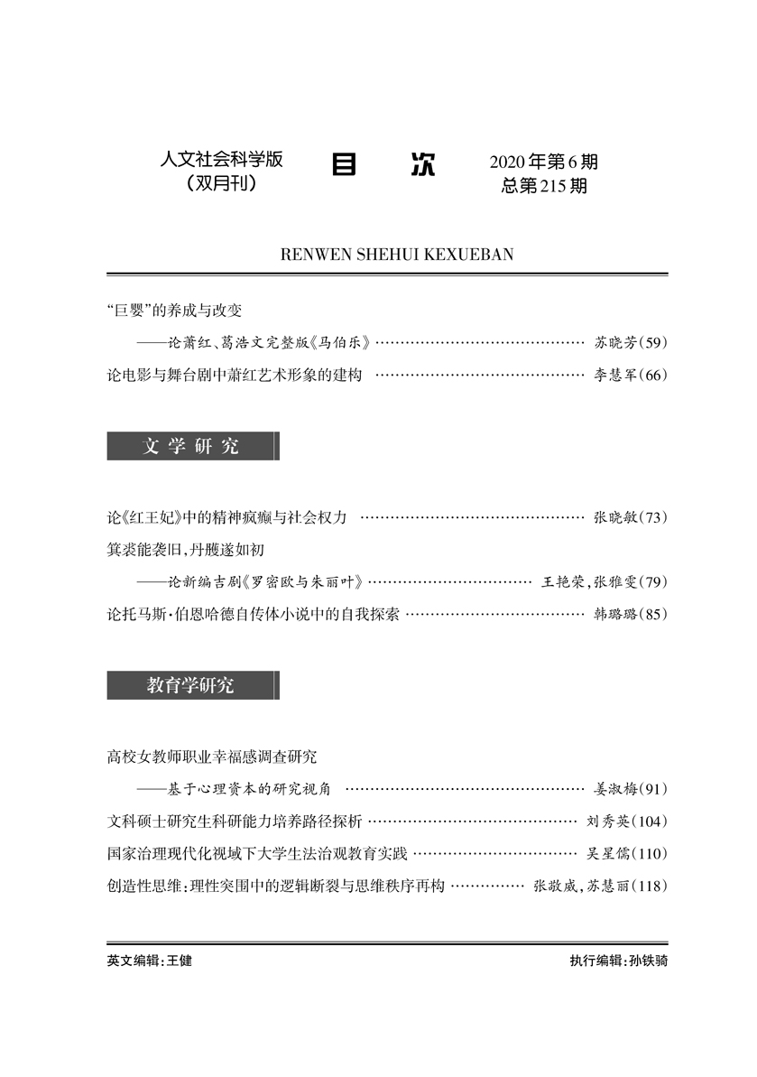 《yL23411永利官网登录学报》(人文社会科学版)2020年第6期