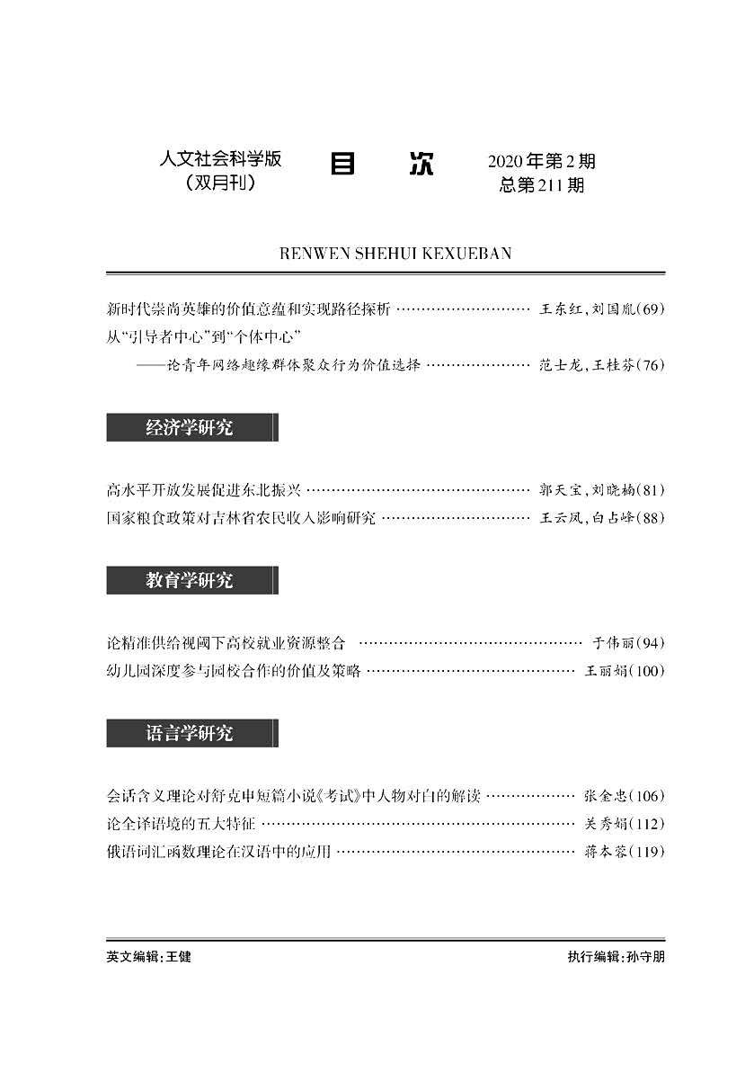 《yL23411永利官网登录学报》(人文社会科学版)2020年第2期