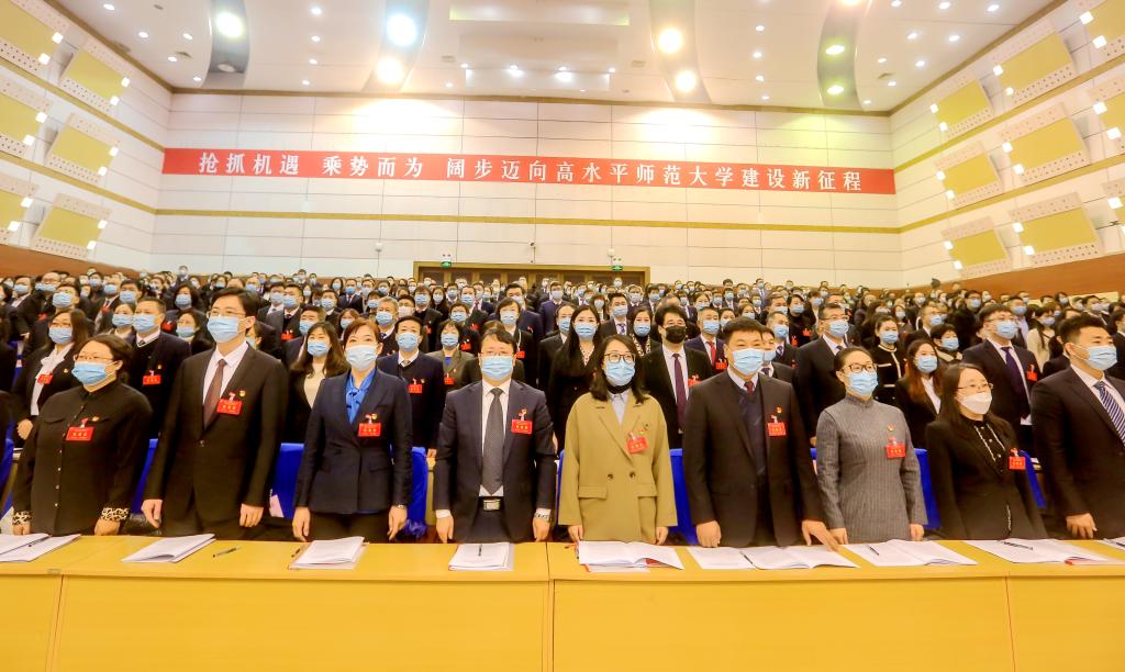 王喜库在报告中号召,雄关漫道真如铁,而今迈步从头越。“强师报国、顶天立地,崇德尚学、学高身正,惟实创新、敬业奉献,精诚团结、图强至善”的吉师精神,既是我们披荆斩棘、攻坚克难的成功密码,更是我们在新征程上奋起竞逐、追赶超越的铮铮誓言。让我们更加紧密地团结在以习近平同志为核心的党中央周围,在省委的坚强领导下,全面贯彻习近平新时代中国特色社会主义思想,抢抓机遇、乘势而为,阔步迈向高水平师范大学建设新征程!